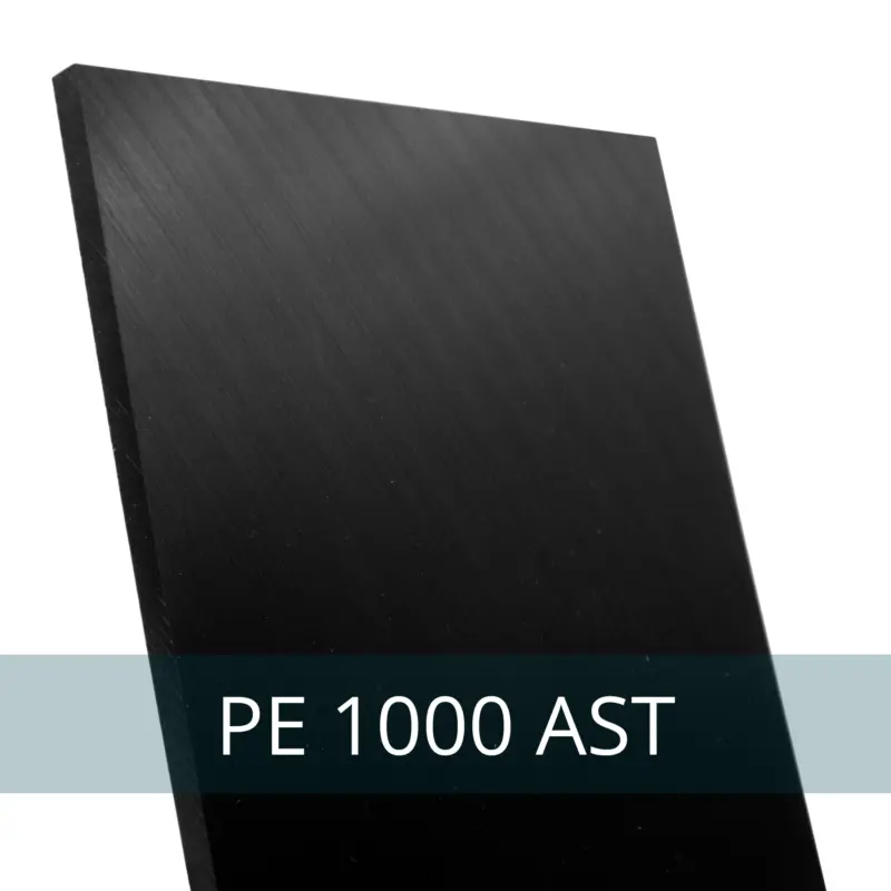 PE 1000 AST on antistaattinen materiaali, joka kestää kulutusta, on liukas ja sitkeä materiaali. Tämä on pehmeämpää kuin POM AST, eikä ole yhtä mittatarkka koneistaa. Tätä käytetään kulutuspaloina, liukukiskoina ja erilaisina ohjureina.